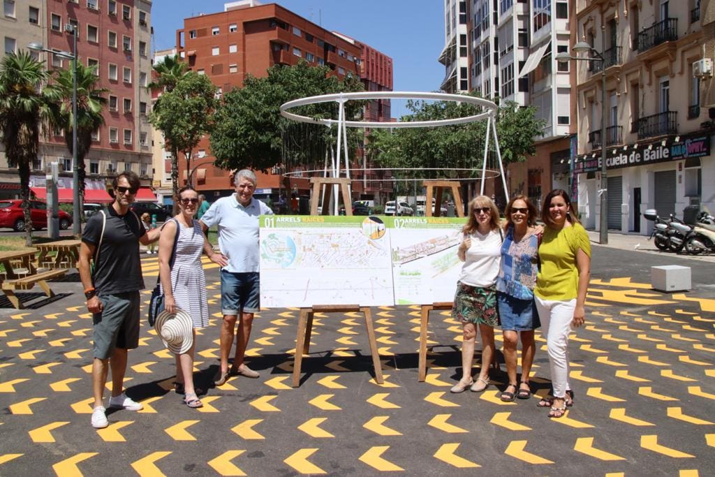 Las obras de reurbanización provisional de las avenidas Pérez Galdós y Giorgeta, que finalizarán esta misma semana, han generado dos nuevas plazas. La vicealcaldesa y concejala de Desarrollo y Renovación Urbana, Sandra Gómez, ha recorrido esta mañana el nuevo espacio vecinal en el cruce de Pérez Galdós y Jesús, junto a representantes de la plataforma Fuera Túnel, la Federación de Asociaciones de Vecinos y las asociaciones vecinales de Patraix y Arrancapins, entre otras entidades.