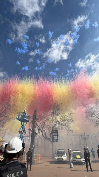 Tras la mascletà, los pirotécnicos de Valenciana han subido al balcón para recibir la ovación de la plaza. El disparo ha quemado 233 kilos de material pirotécnico en algo más de cinco minutos, ha explicado el pirotécnico Manolo Crespo, de 22 años, hijo del propietario José Manuel Crespo. Ha descrito que ha sido una ‘apuesta personal con los ritmos‘ y que ha reflejado ‘a la perfección’ lo que tenían en mente. Crespo ha recordado que este año se cumplen 30 años desde que el rey presenció una mascletà disparada por su padre y han querido rendir homenaje ‘con dos golpes’ en los que han hecho ‘la bandera de humo de España y otra de la Senyera‘ con sus colores. ‘Hemos hecho la mascletà con un ritmo perfecto, un terremoto que ha ido ‘in crescendo‘ y un remate final bestial‘, ha concluido.