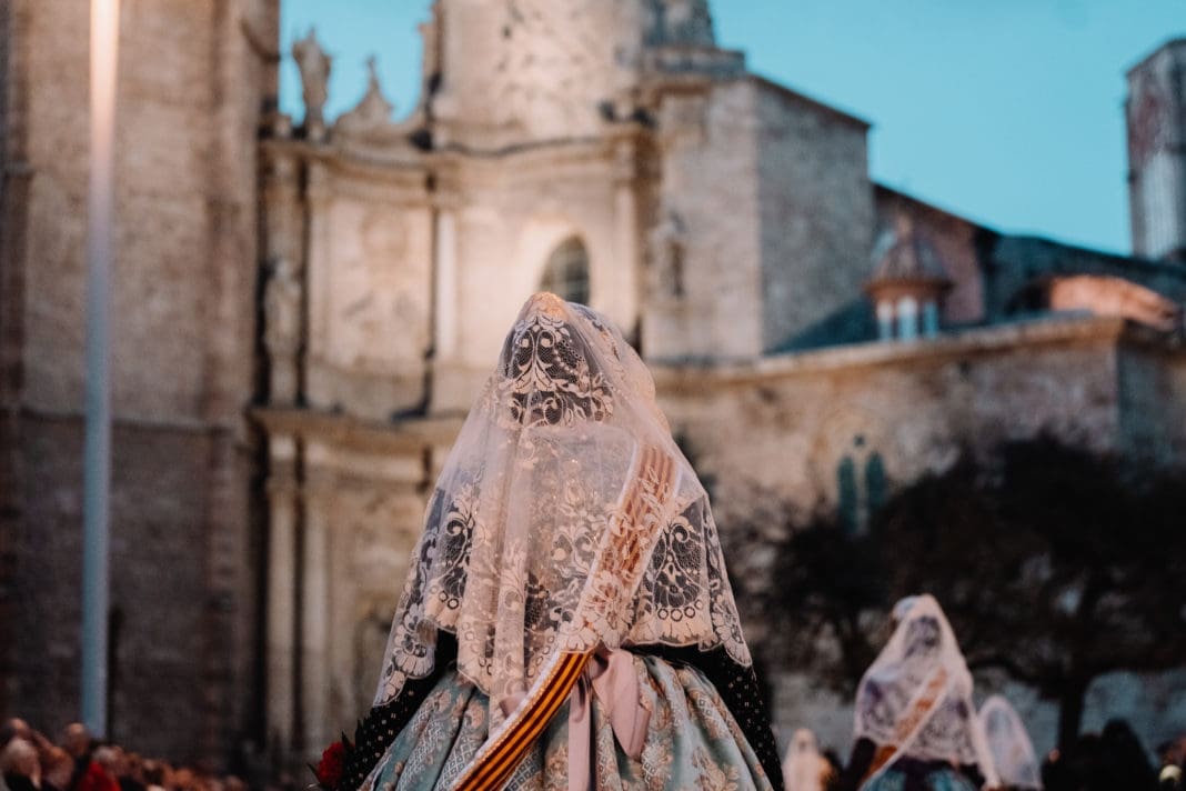 La tarde del domingo la atención se desplazará a la plaza de la Mare de Déu y a las calles adyacentes por las que las comisiones falleras accederán a esta plaza para participar en la tradicional Ofrenda de flores a la Mare de Déu. Por la calle de la Pau entrarán las comisiones de Canyamelar-Grau-Natzaret, la Xerea, Rascanya, Camins al Grau, Russafa, i Pla de Reial Benimacelt. Des de Sant Vicent lo harán las de El Pilar- Sant Francesc, Patraix, La Seu-El Mercat, Botànic-Petxina, Quart de Poblet-Xirivella, Jesús, Mislata y Creu Coberta.