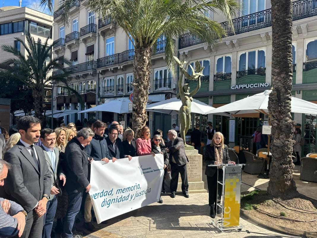 La alcaldesa de València, María José Catalá, acompañada de concejales y concejalas de la corporación, y la consellera de Justicia, Elisa Núñez, ha participado en la conmemoración del Día Europeo de las Víctimas del Terrorismo, en un acto organizado por la Asociación de Víctimas del Terrorismo (AVT) en la plaza de la Reina.