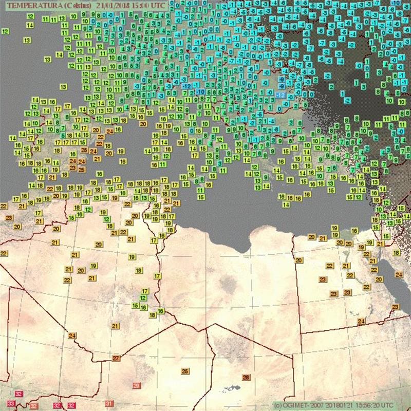 Les mateixes fonts han assenyalat que, a les 16 hores d’ahir, València tenia el registre més càlid de les temperatures registrades en els observatoris d’Europa i nord d’Àfrica que envien dades a la xarxa mundial.