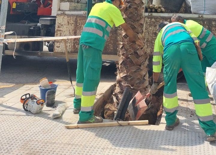 El Ayuntamiento de València ha empezado hoy la plantación del arbolado previsto en el programa Una València más Verda II, surgido de los presupuestos participativos DecidimVLC. En atención a las condiciones meteorológicas, con temperaturas todavía elevadas, se han iniciado los actuaciones con las palmeras, en este caso el ejemplar del género Washingtonia plantado en el barrio de Natzaret.