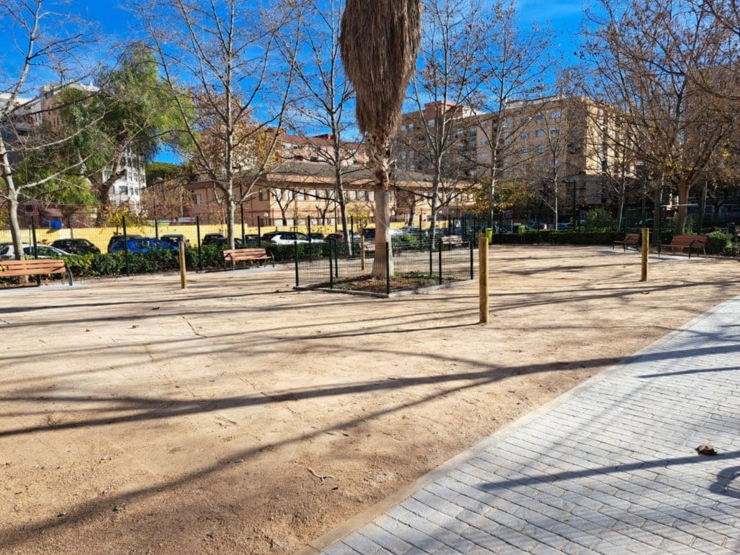 La creación de la nueva zona de socialización canina en Benimaclet, junto al CEIP Carles Salvador, ha requerido un plazo de ejecución de seis semanas para remodelar un total de 805,45 metros cuadrados del área verde.
