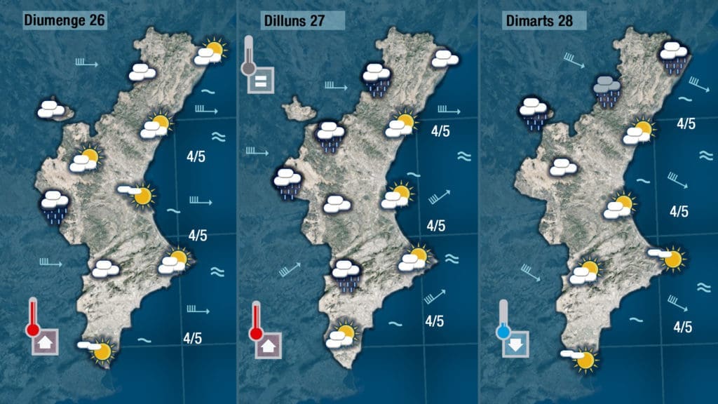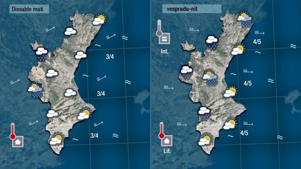 Domingo y lunes las nubes atravesarán la Comunitat Valenciana de oeste a este dejando lluvias débiles y más probables por el interior.