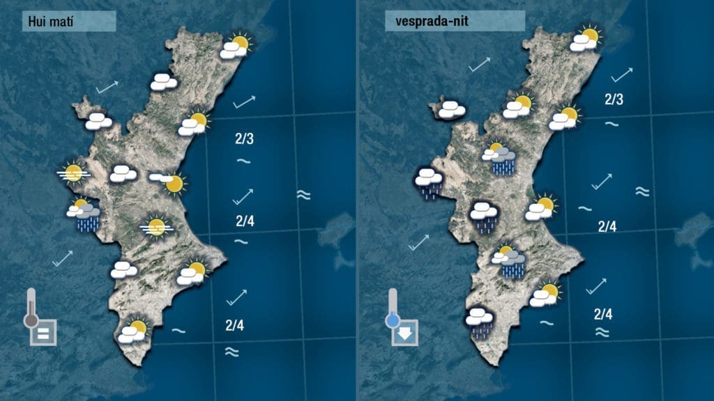 Desde primera hora hemos notado como el viento sopla de Levante anunciado desde donde nos llegará hoy la nubosidad. Ha llovido en Andalucía de forma general e incluso generosa las últimas horas pero aquí, en la Comunitat valenciana las nubes llegan ‘enjutos’ y solo dejan chubascos débiles que hoy serán más probables al interior de la mitad sur de la Comunitat. Al quedar el cielo más cubierto desde media mañana hay que esperar un ligero descenso de las temperaturas.