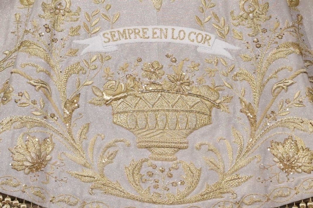 Se trata de una pieza histórica realizada «con mucho sentimiento y devoción», conformado por un tisú de seda y un tisú de plata, quedando plasmado el lema del Centenario, ‘Sempre en lo Cor’ –‘Siempre en el Corazón’–, una de las frases del Himno de la Coronación de la Mare de Déu.
