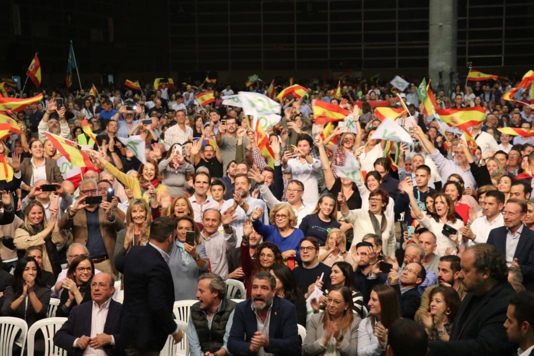 Les 19.00 era l’hora triada, amb una baixa exigència horària per a facilitar l’assistència. La sala plena i els mitjans reunits, iniciaven comunicació els periodistes de LaSexta quan l’esbronc del públic els obliga a tallar. Missatge clar, els mitjans no eren ben rebuts per les bases de VOX. La megafonia no ha tardat a pronunciar-se, demanant per favor respecte a la premsa i llibertat per a fer el seu treball, missatge que el mateix líder del partit, Santiago Abascal, ha hagut de repetir durant la seua intervenció, pel que sembla el concepte era complex d’entendre.