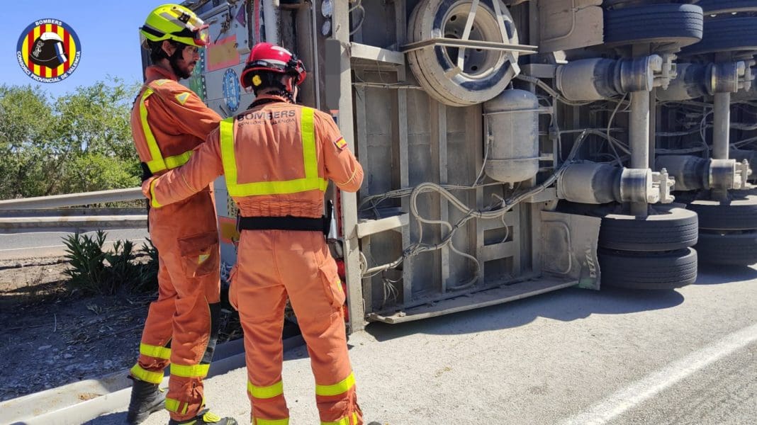 Un camión que transportaba toros ha sufrido un accidente en la autovía A-3 a la altura de la salida de Buñol. Según informa el Consorcio Provincial de Bomberos de València, el tráiler ha volcado y los animales se encuentran dispersos por la carretera auxiliar.
