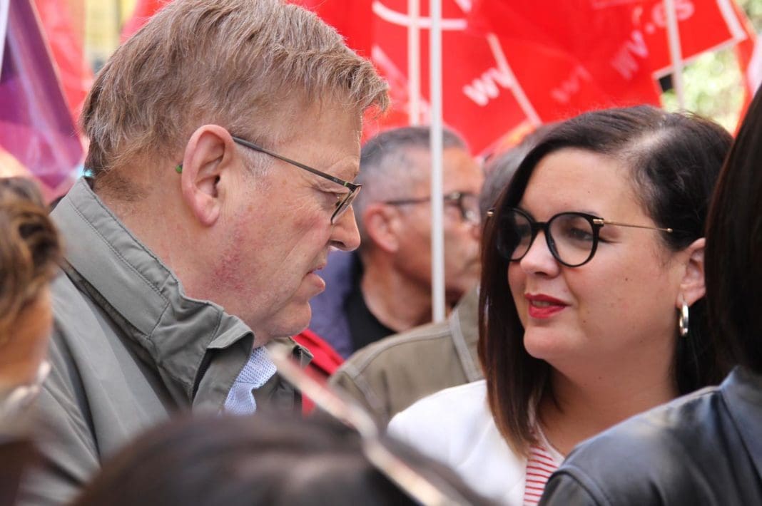 El president de la Generalitat y secretario general del PSPV-PSOE, Ximo Puig, ha reivindicado hoy la consolidación del pleno empleo como una “ambición absolutamente irrenunciable” para el proyecto socialista. Así lo ha manifestado durante la manifestación celebrada en València con motivo del 1 de mayo, Día del Trabajador y la Trabajadora, a la que ha asistido junto a la Ministra de Ciencia, Innovación y Universidades y secretaria de Ciencia, Innovación y Universidades del PSOE, Diana Morant.